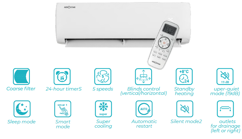 Automatic and continuous airflow.Aerostar air conditioning technology for distributing air in the room gives the user maximum comfort. Automatic horizontal and vertical louvers allow you to choose any of the