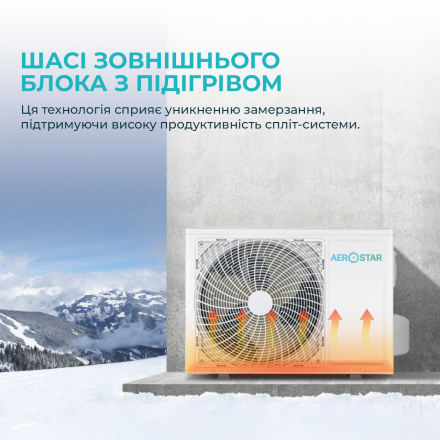 Heated outdoor unit chassis. Since due to high humidity and low temperatures, outdoor chassis can easily freeze and negatively affect the operation of the air conditioner, Aerostar uses electric chassis heating cables.This technology helps to avoid freezing, maintaining high performance of the split system.