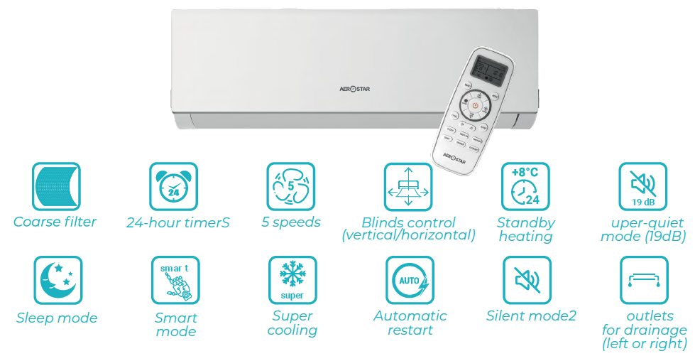 Automatic and continuous airflow.Aerostar air conditioning technology for distributing air in the room gives the user maximum comfort. Automatic horizontal and vertical louvers allow you to choose any of the