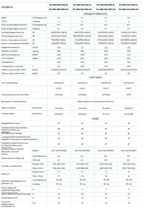 Environmentally friendly refrigerant R32. A modern and environmentally friendly refrigerant. Advantages compared to R410A: no impact on ozone content in the air (less impact on global warming), higher energy efficiency, high thermal conductivity and cooling capacity.