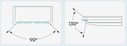 Up to 90° airflow in the horizontal direction.
