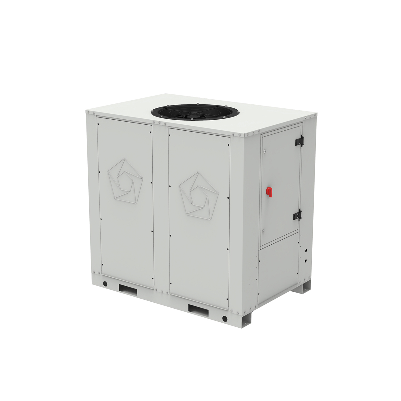 State of the art design of the external construction of the unit. Flat top fan installation decrease unit height and increase efficiency.