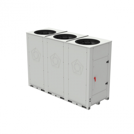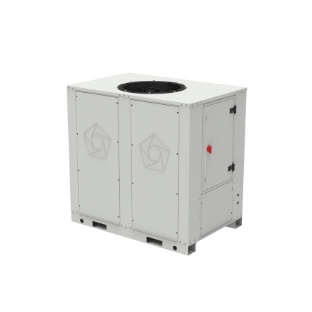 Standard execution cooling works at full load down to 0°C, with fan speed control (EC fans) and Low temperature option works down to -20°C. In summer season the unit works up to 45°C. Protection during extreme temperatures is supervised by ACS limitations functions. Cold water setpoint depend on fluid type used, for water the minimal setpoint is 4°C (for more details refer to the technical documentation ACS).
