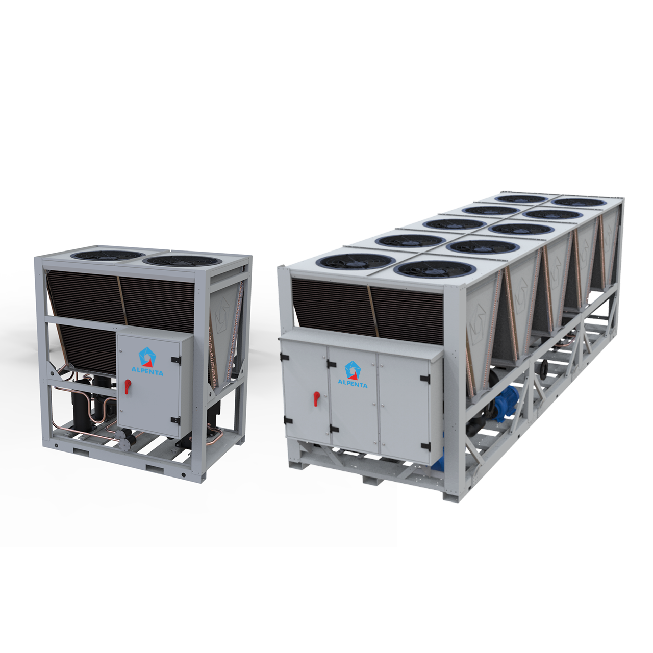 ACS inside: Alpenta Control System – Advanced control of the cooling unit via main programable microprocessor controller. Dynamic high pressure setpoint and few limitation functions maximize working efficiency on partial loads and when outside conditions are close to the working limits.