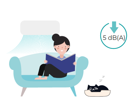The low-noise inverter fan motor, anti-vibration insulation on the expansion tube and EEV ensure quieter operation. In addition, Aerostar’s special intelligent noise reduction technology effectively reduces operating noise. When operating in high airflow mode, the maximum noise level is reduced by 5 dB(A)* compared to the previous generation.