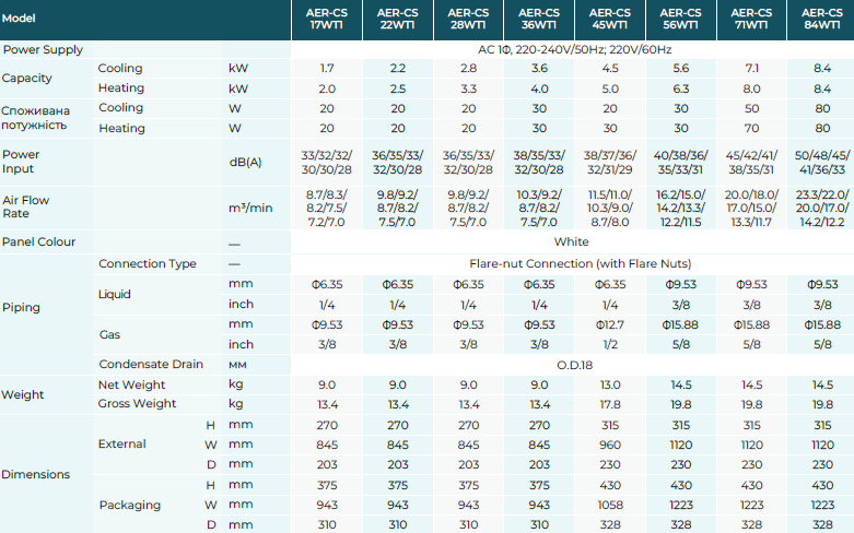 *Reduced noise performance, AER-CS45 unit is used as an example
