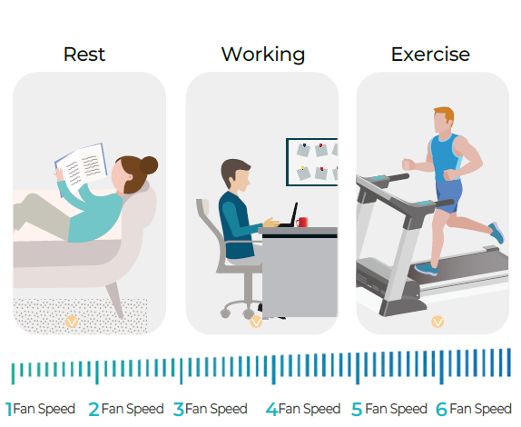6 indoor fan speeds are available to meet the needs of different indoor conditions.