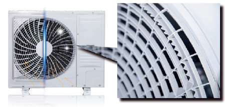 The Aerostar REF Series VRF is very quiet. The design of the outdoor unit grille is based on the principles of aircraft construction and aerodynamics. The grille on the outdoor unit also improves the safety of the system, as it prevents the possibility of injury to people by the fan blades.
