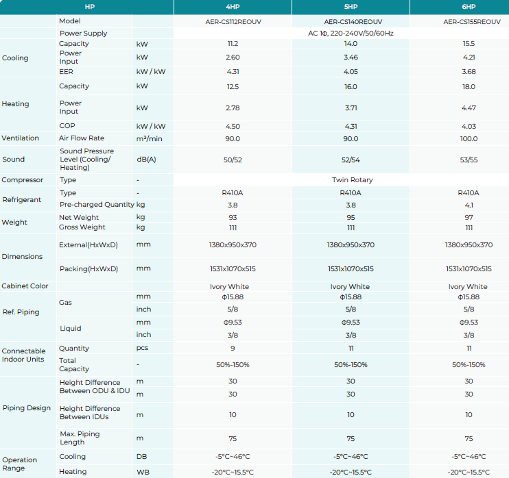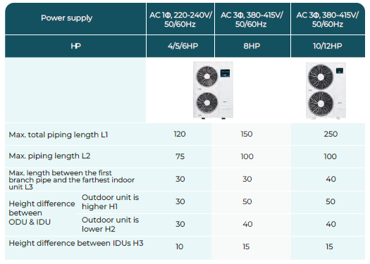 Increased piping length allows for flexible design and installation. Aerostar inverter technology and two-level cooling technology allows longer piping length and outstanding height ifferences.