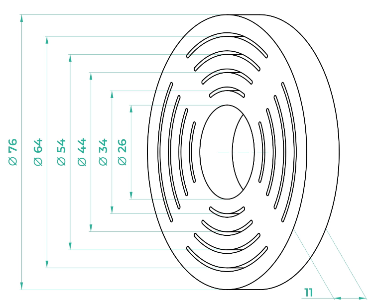 Adjustment and size of the air flow pressure drop is carried out by cutting out individual ring holes, which consist of 5 levels.