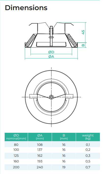 The EVF extractor valve is designed for installation in the ceiling, in the wall or directly on the duct using a special frame.