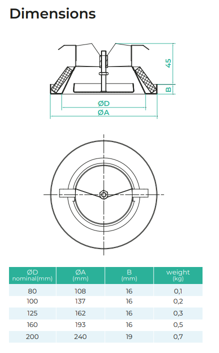 The EVF has a smoothly adjustable air flow by means of a rotating central disk. The selected slot is fixed with a locking nut. The special design of the damper guarantees low noise level as well as fast and easy installation.