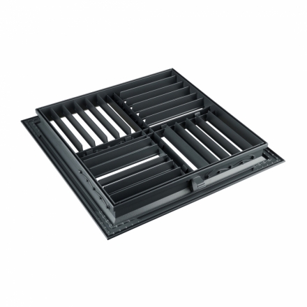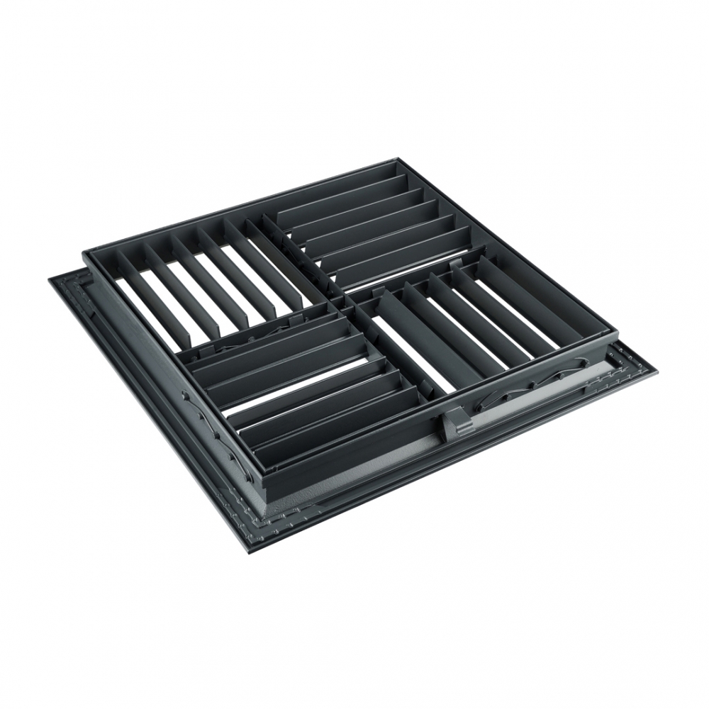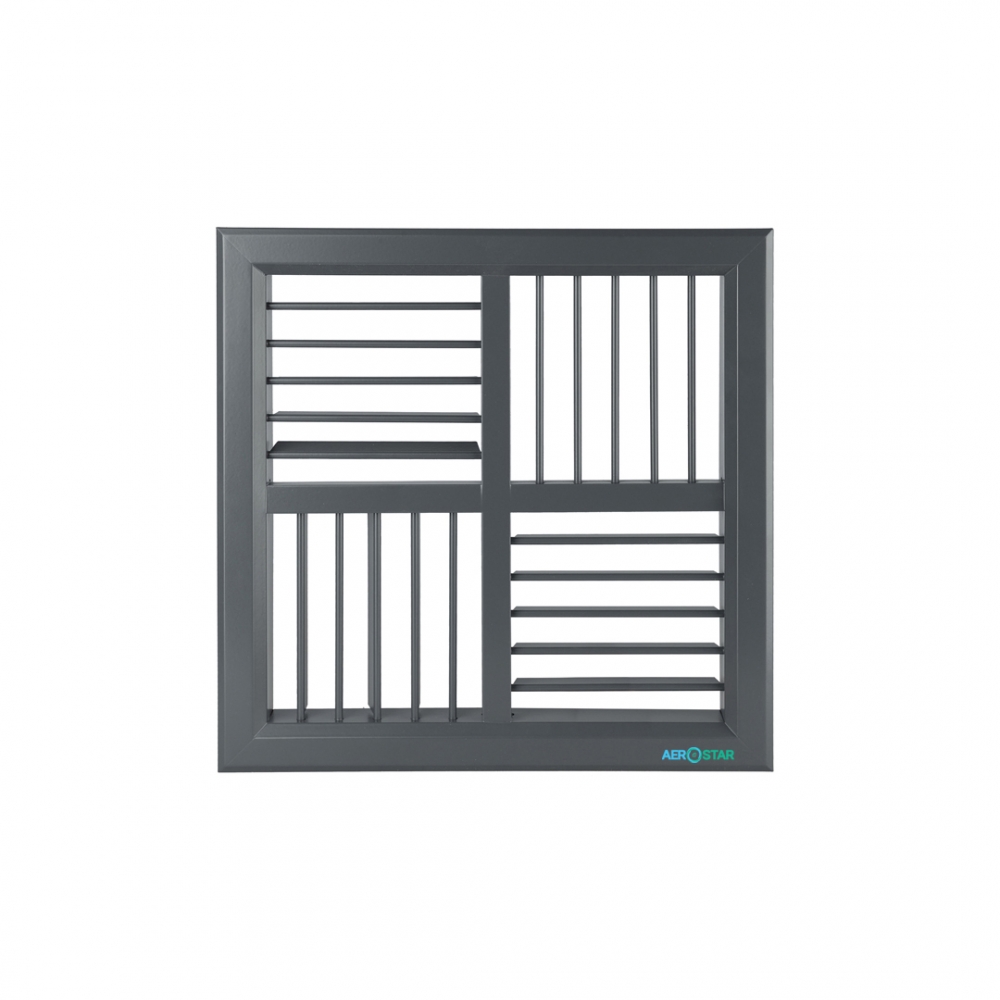 The grilles are made of high-quality aluminium profiles in the form of a frame and consist of perpendicular pairs of movable vanes, changing the position of which (the angle of inclination is selected individually and adjusted independently of each other), it is possible to correct the direction of the air flow.