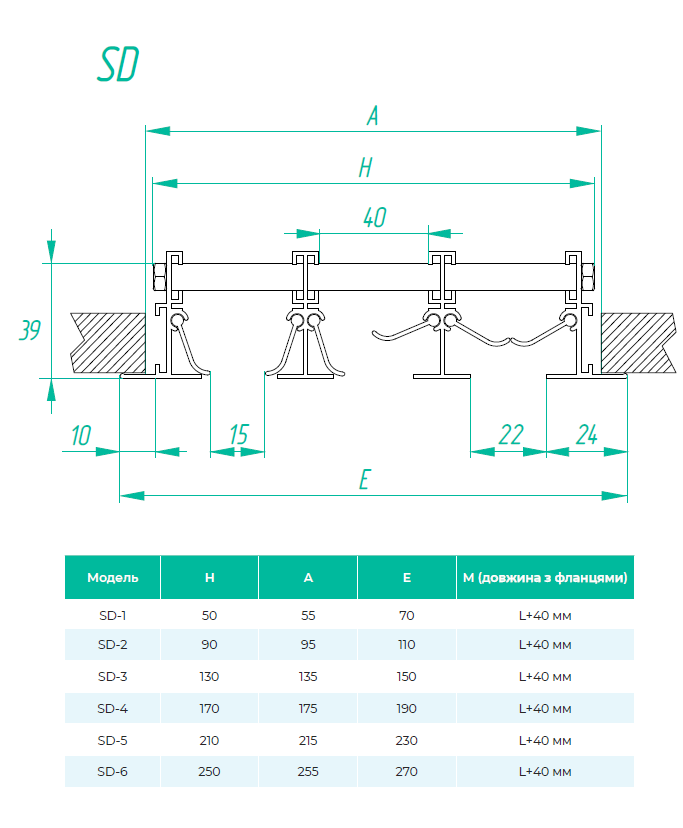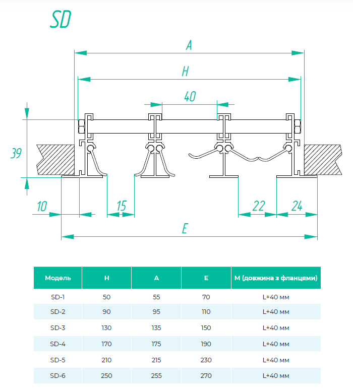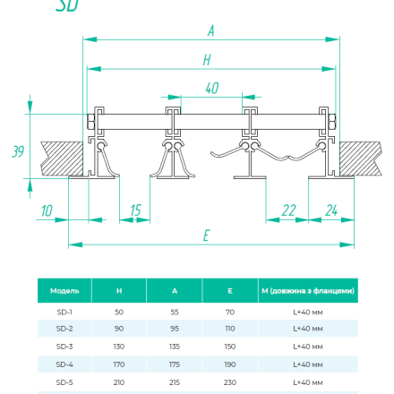 SD-1 - h = 50 mm – diffuser with 1 slot has a connection height of 50mm, each subsequent slot plus 40mm.