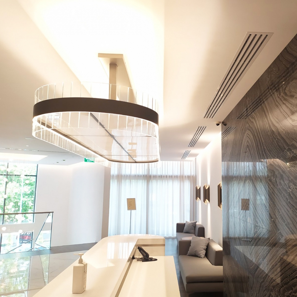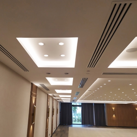 SD-2-1 (RAL-9016/9016) L = 1000 – with 2 slots, 1 – one side is plugged, the other is open (the set includes docking plates for connecting slit diffusers to each other). They are used for elements over 2 meters long. Frame colour – white, louvers – white.