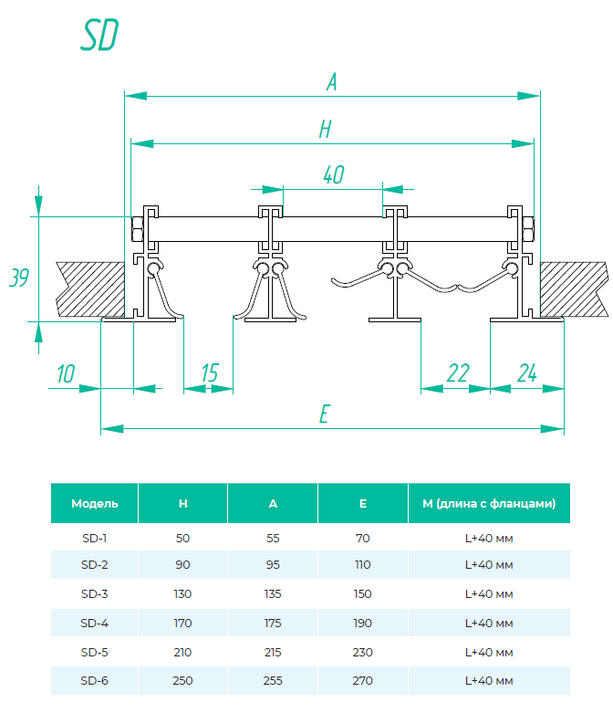 SD-+D1 - h = 50 mm – diffuser with 1 slot has a connection height of 50mm, each subsequent slot plus 40mm.