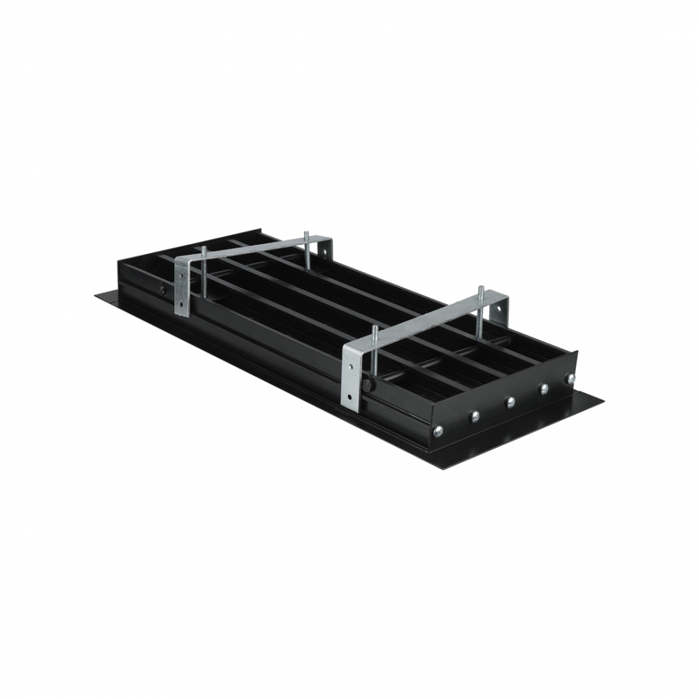 SD+D-1-2 (RAL-9016/9005/demp 9005) L=500 – with 1 slot, 2 – with 2 side flanges (closed edges). They are used for elements up to 2 meters long. Frame colour – white, louvers – black, damper – black.