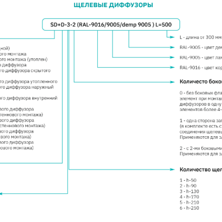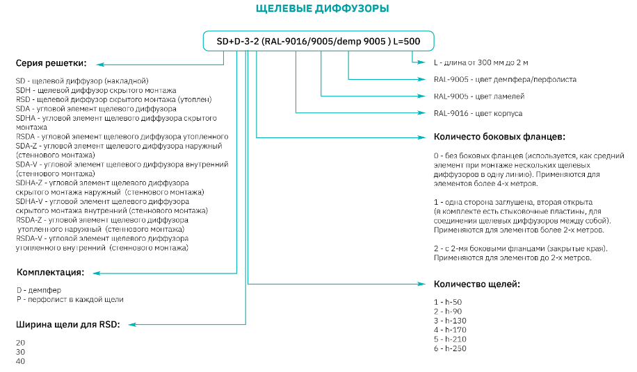 Diffusers of this series include products of both standard sizes and the ability to manufacture any length L with a step of 5 mm in the range from 300 to 2000 mm.