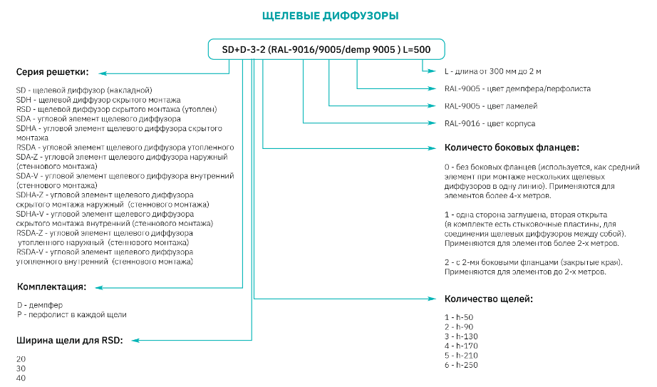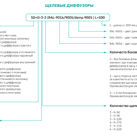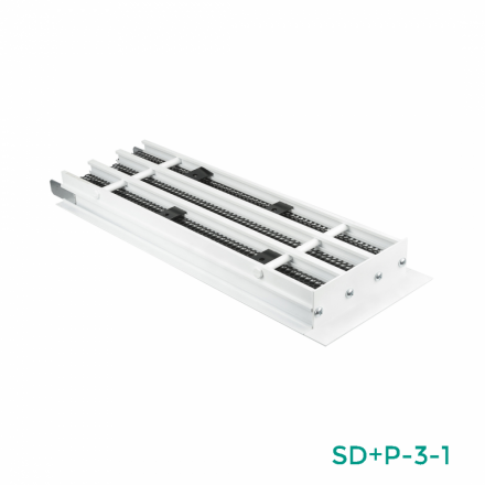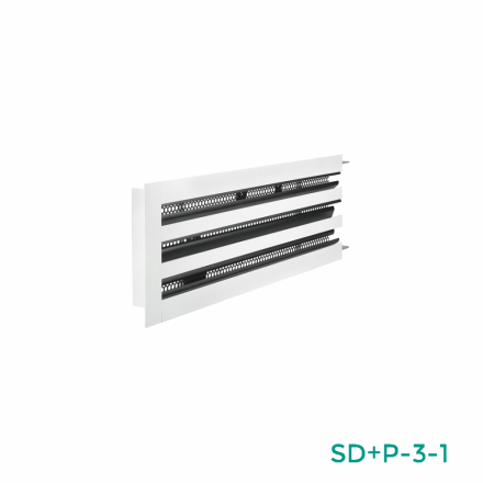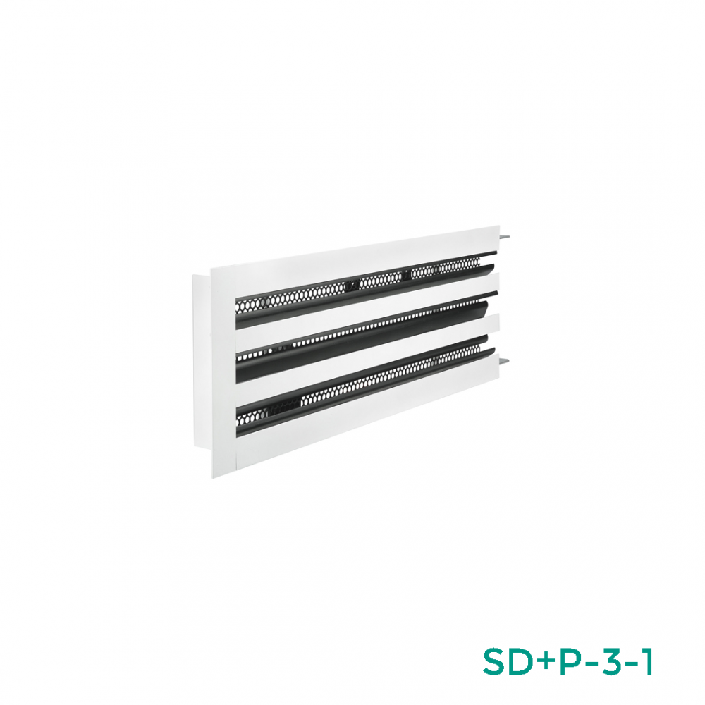 SD + P – Slit diffuser with perforation inside each slot. It performs both a technical function – uniform distribution of air along the entire length of the slot, and a decorative one – it hides from full view the space beyond the slots.