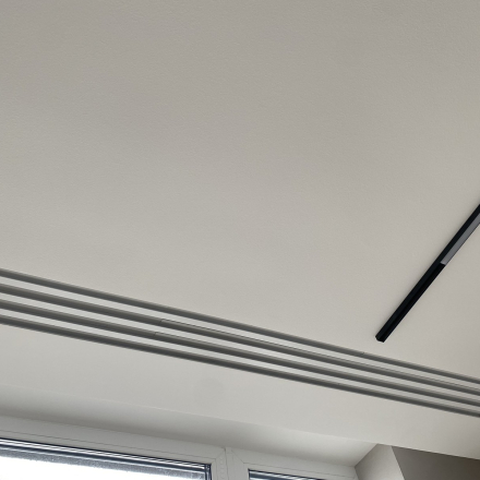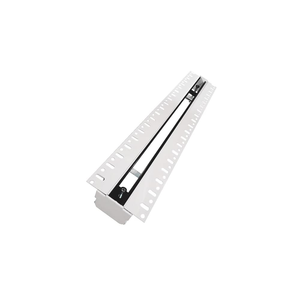 The frame of such a diffuser has ribs and holes for better joining of the filler material with the plasterboard. The inner strip, which is used to separate the slots (2 slots or more), is not putty, therefore, the colour of the diffuser must be matched to the colour of the ceiling or wall, depending on the place of its installation.