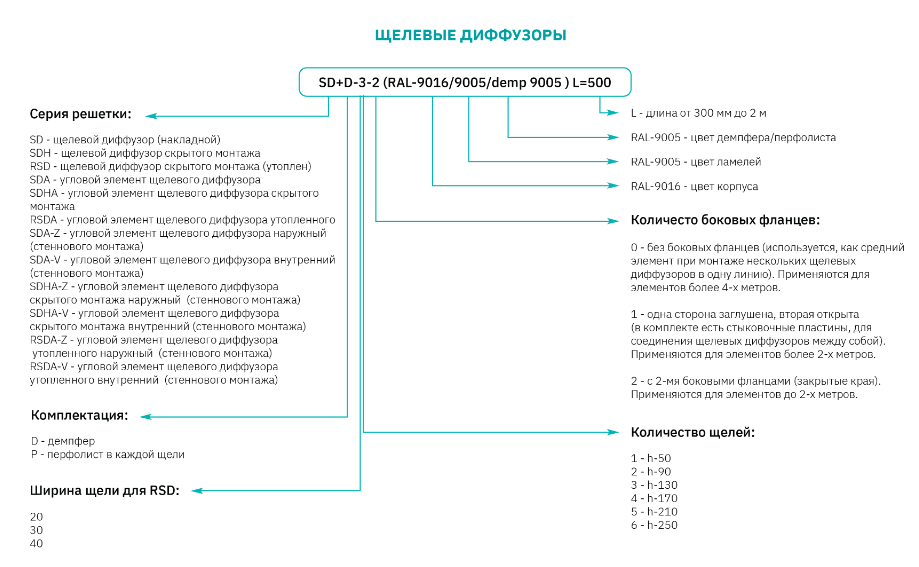 SDH+P - Slotted diffuser with perforations inside each slot. It performs both technical function - uniform air distribution along the entire length of the slit, and decorative - hides from full view behind the slit space.