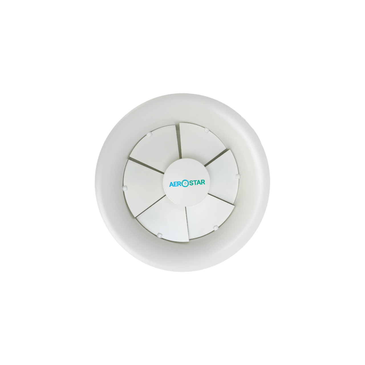 They are used for high air flow rates with a large temperature difference between the room and supply air from -10°C to +15°C. The blades rotate around their axis, resulting in the mixing of air flows in comfort zones, with good distribution of air jets throughout the room and a small turbulent vortex in the area where people are located.