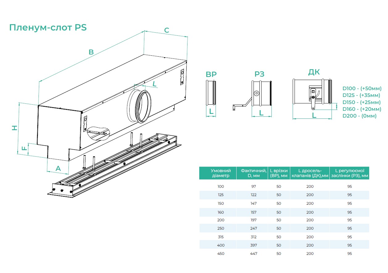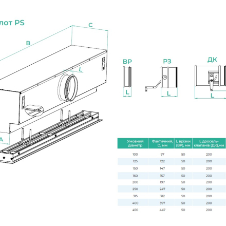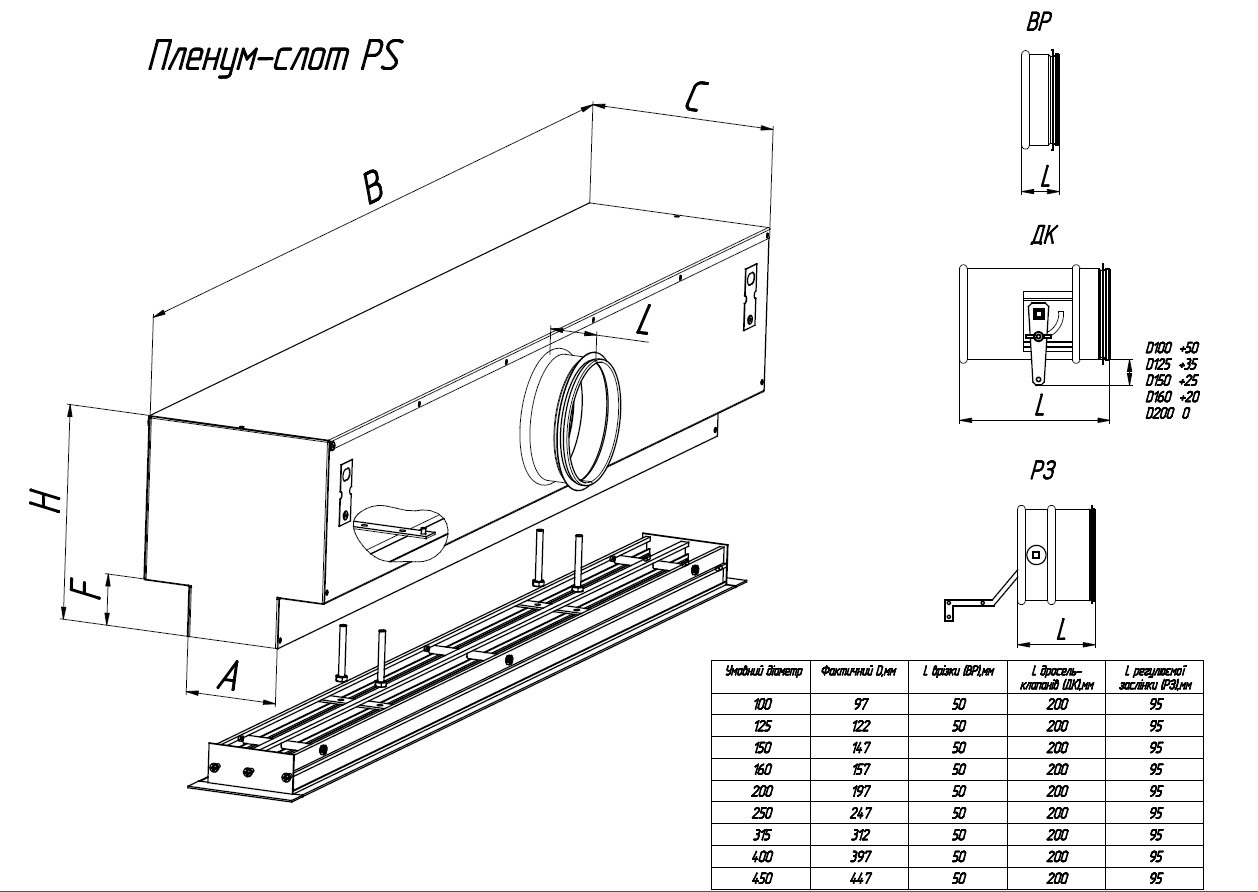 PS-L - left plenum slot (when several elements need to be assembled in one line, this is the first), PS-C - central, PS-R - right;