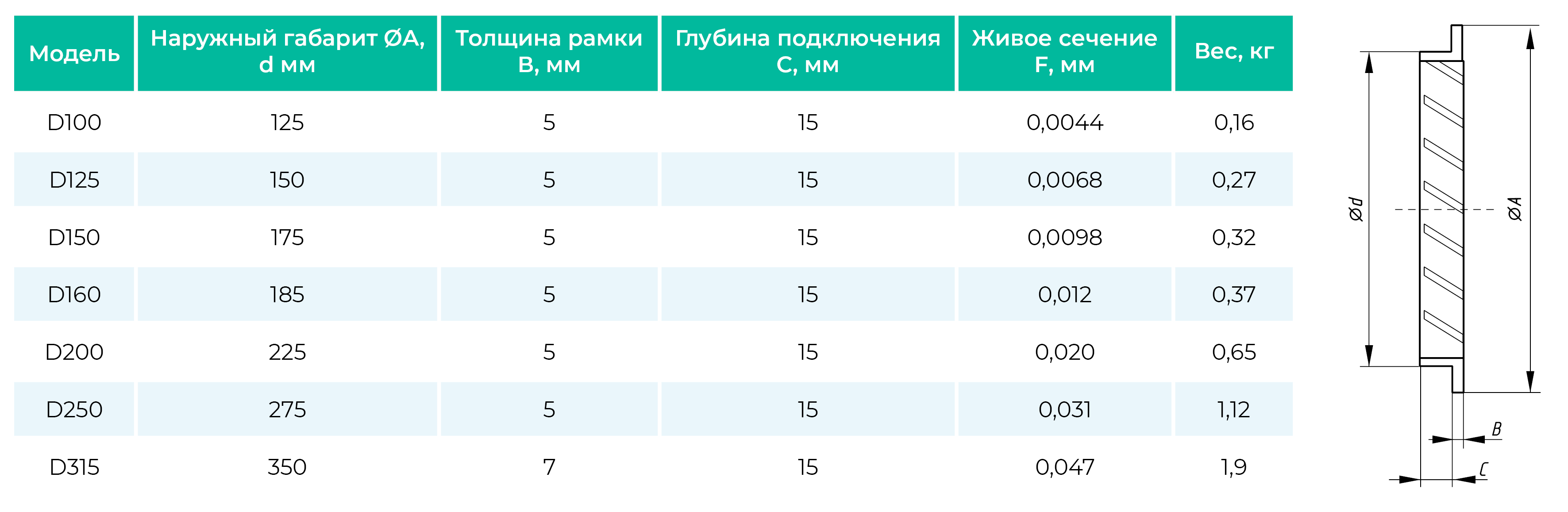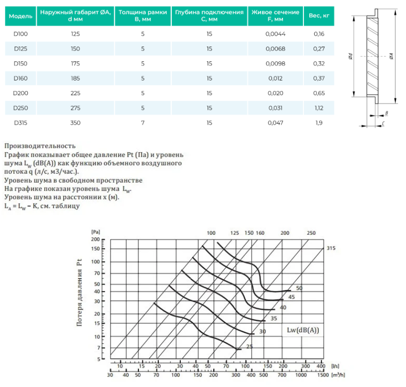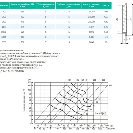 Round grilles of this series include the products only of the regular diameters: d100, d125, d150, d160 d200, d250, d315.