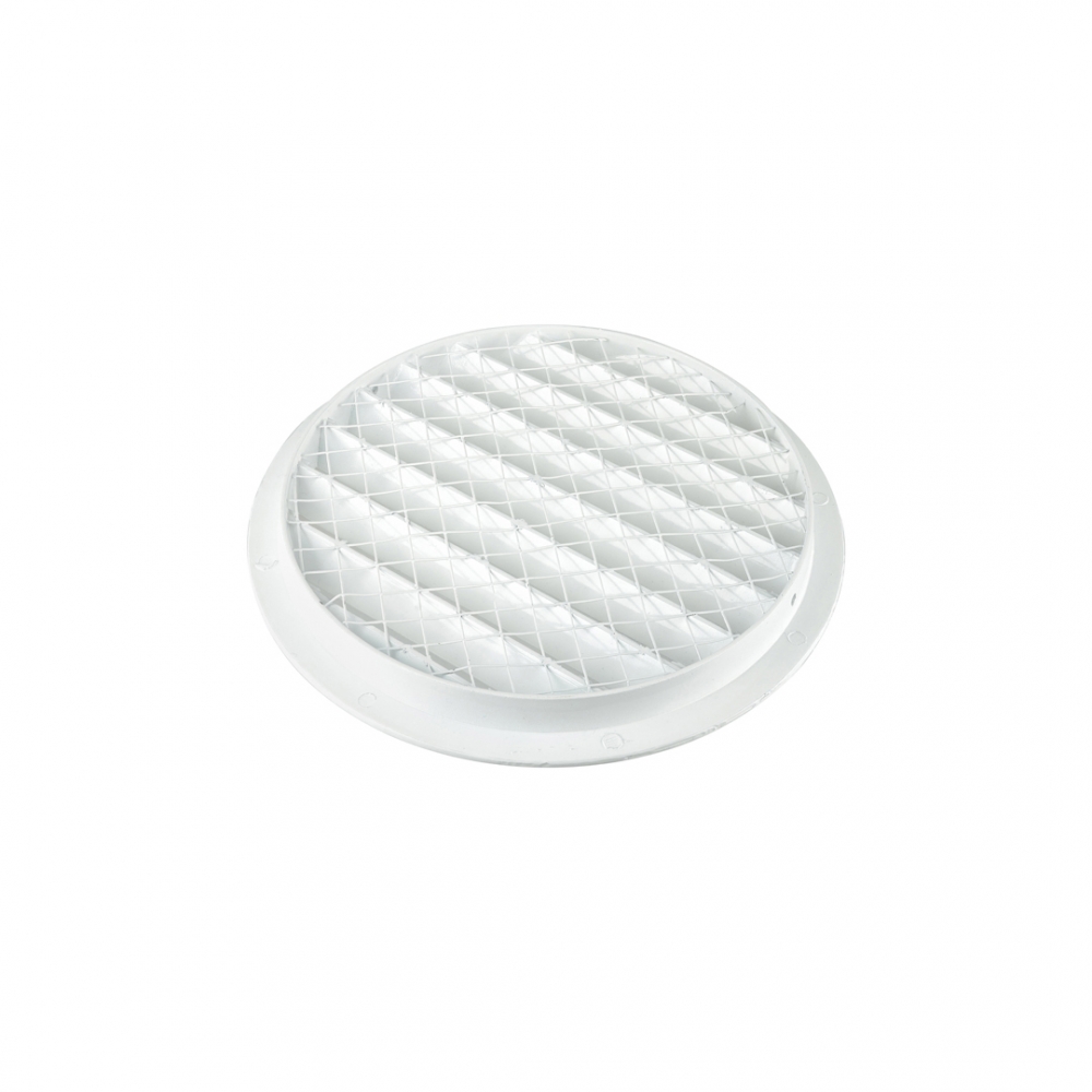 The external grille is stamped from cast aluminium and has high strength. All external grilles are equipped with a bird and rodent mesh with cell size 10x10mm. The round grille is fixed with self-tapping screws. Mounting flange of a round grille is made in cone shape for ease of installation. Not painted, grey colour.