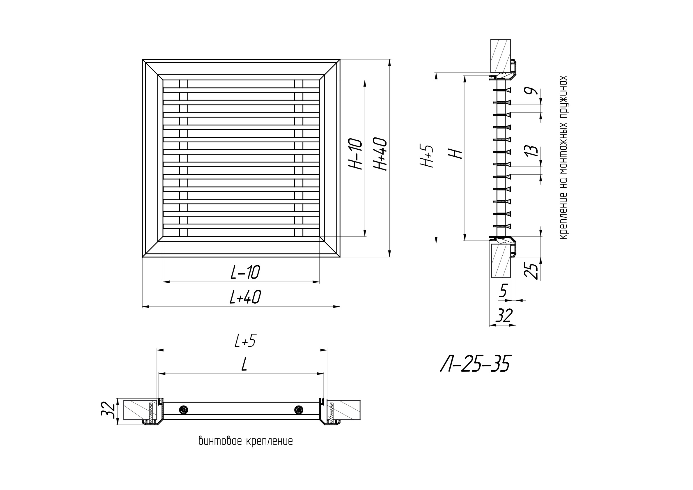 Л-25-35* (RAL-9016) 400х300h – Screw mounting (mounting holes are located on the front side of the grille frame), white colour.