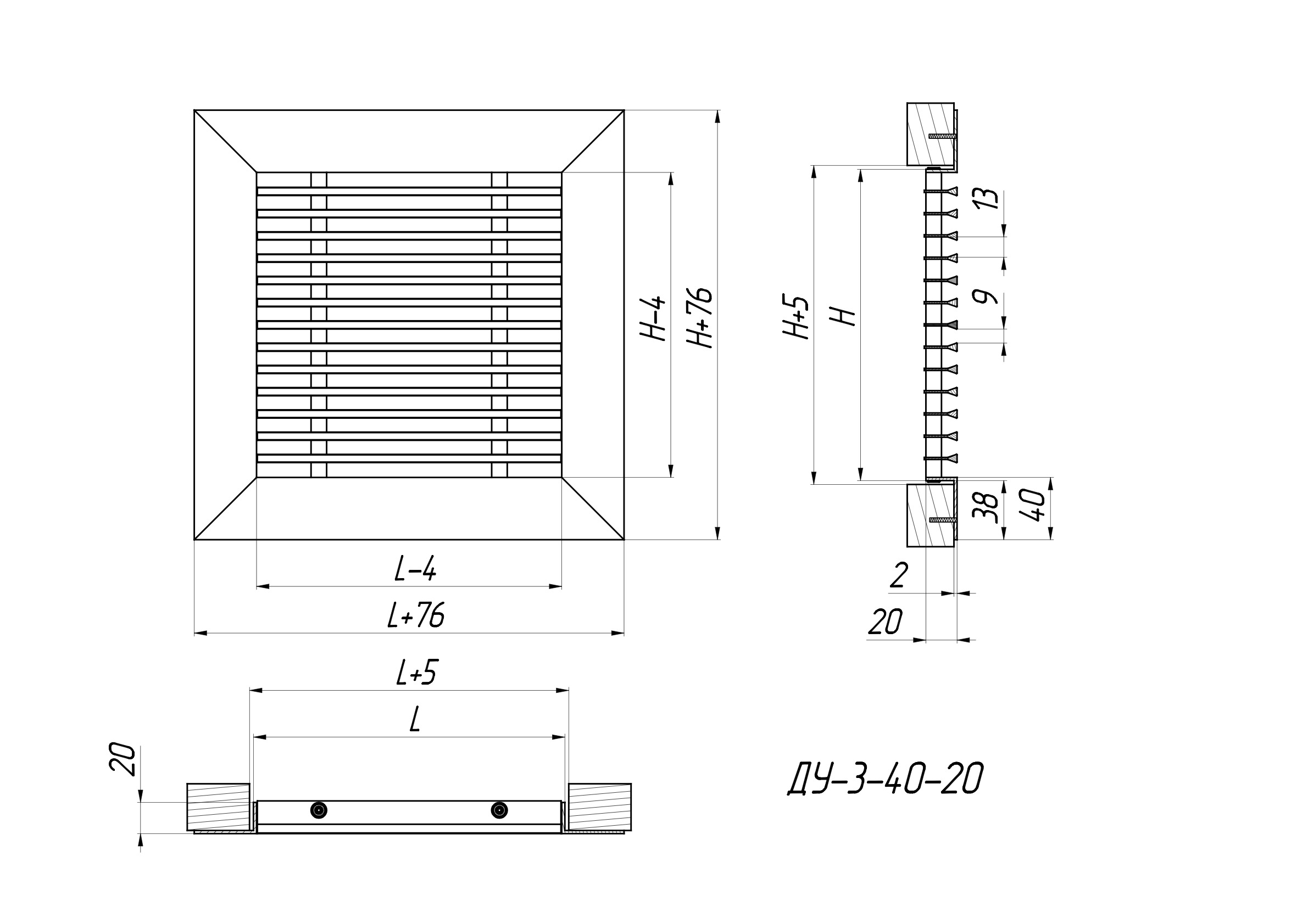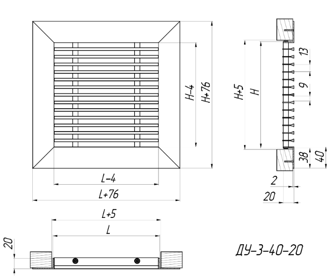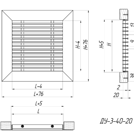 ДУ-3-40-20* (RAL-9016) 600х500h - Screw mounting (mounting holes are located on the front side of the grille frame), white colour.