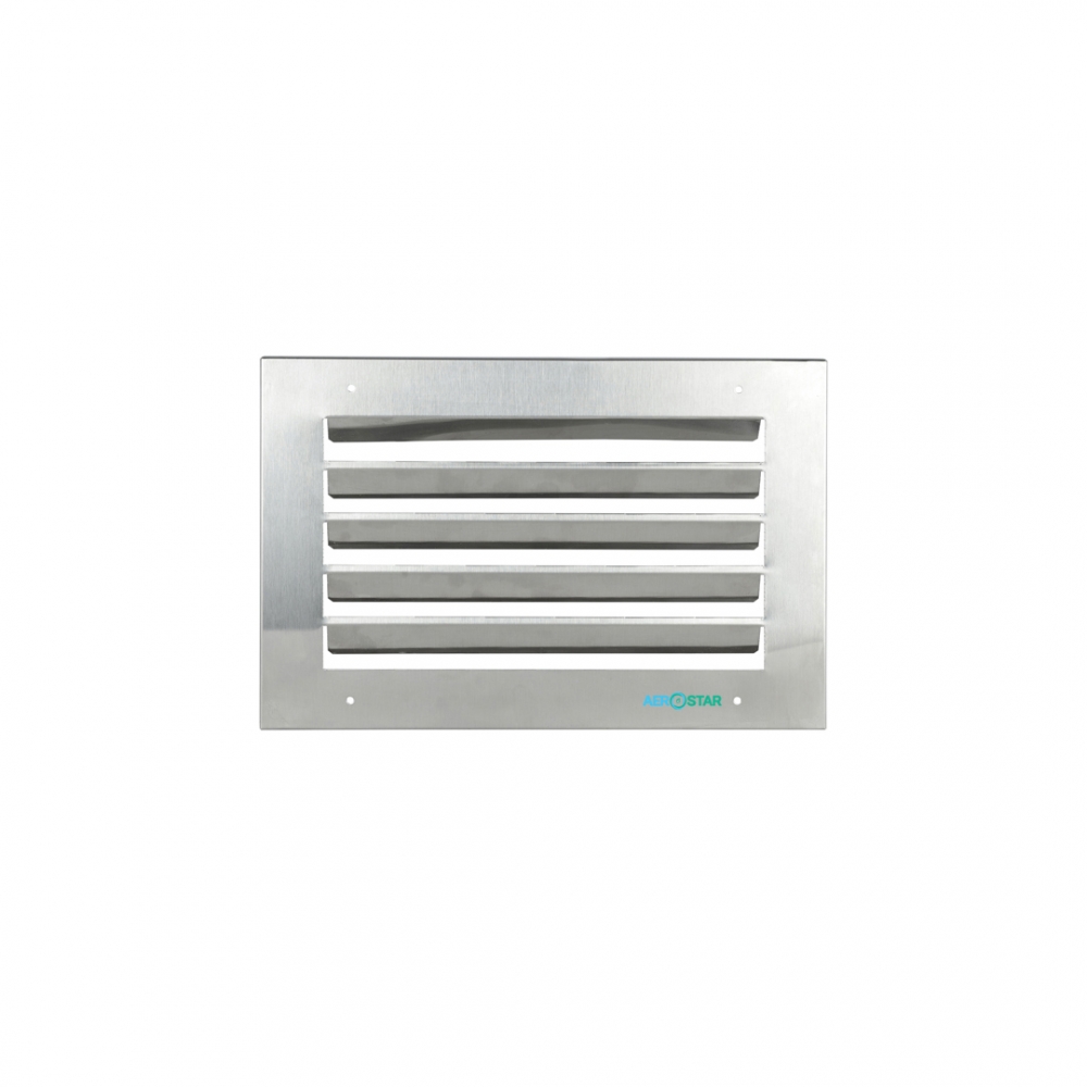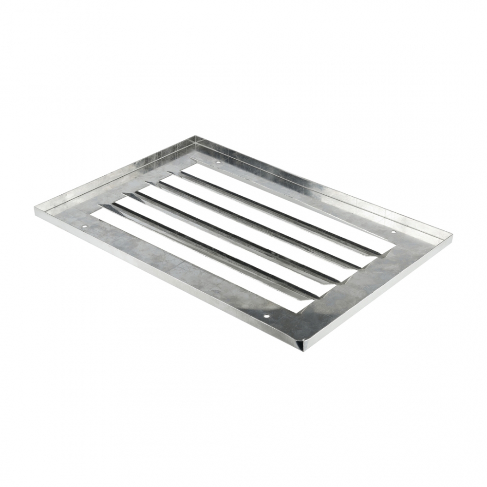 Stamped grilles are made from a solid steel sheet (galvanized or stainless) by stamping and forming horizontally positioned non-adjustable louvers bent inward at an angle of 45°. The frame of the grilles along the perimeter is also bent inward and has a height of 10mm. Designed for air supply or removal by ventilation, air conditioning or smoke extraction systems.