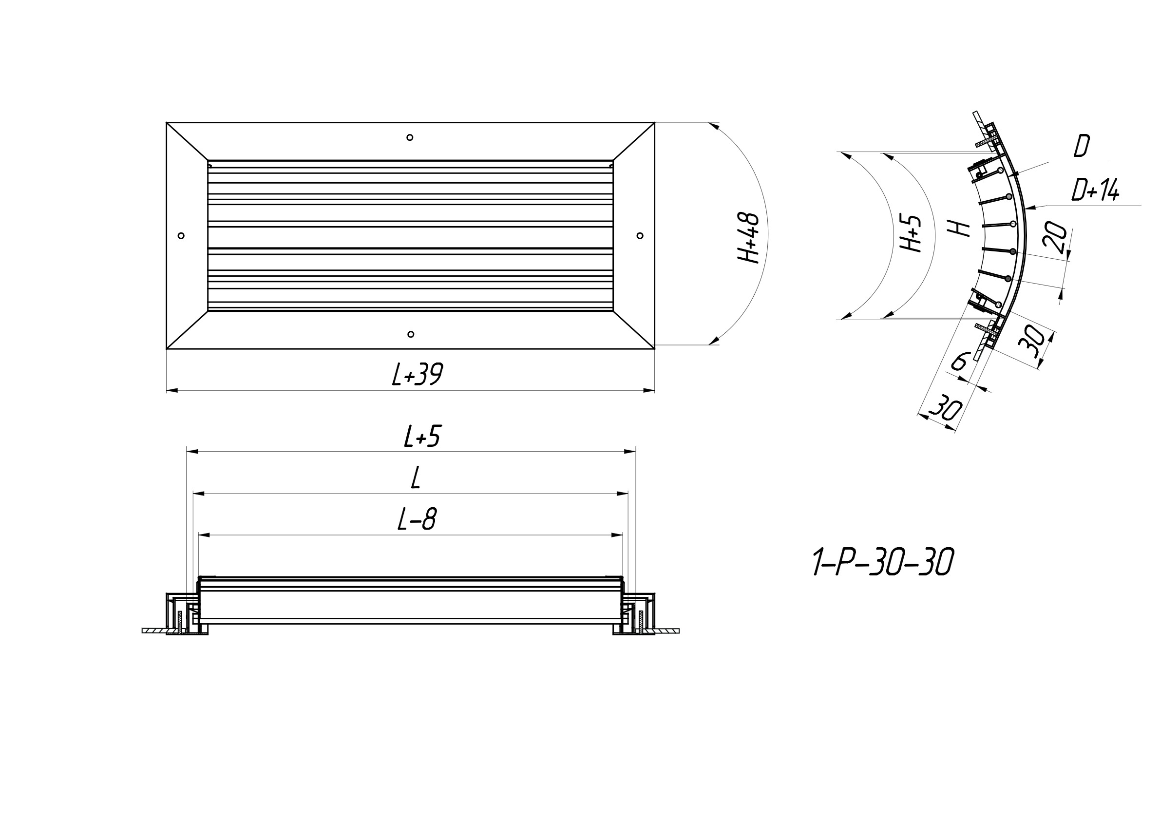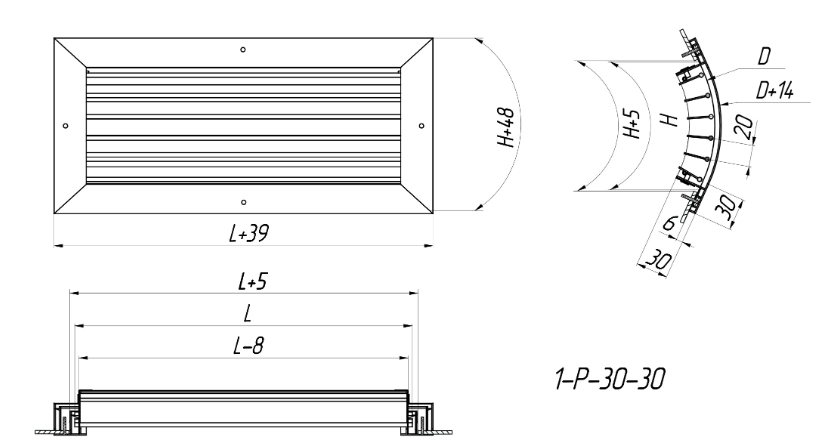 1-Р-30-30 - Single-row adjustable grilles are made of high-quality aluminium profiles in the form of a frame and consist of horizontal movable vanes, changing the position of which (the angle of inclination is selected individually and is adjusted independently of each other), you can adjust the direction of the air flow vertically.
