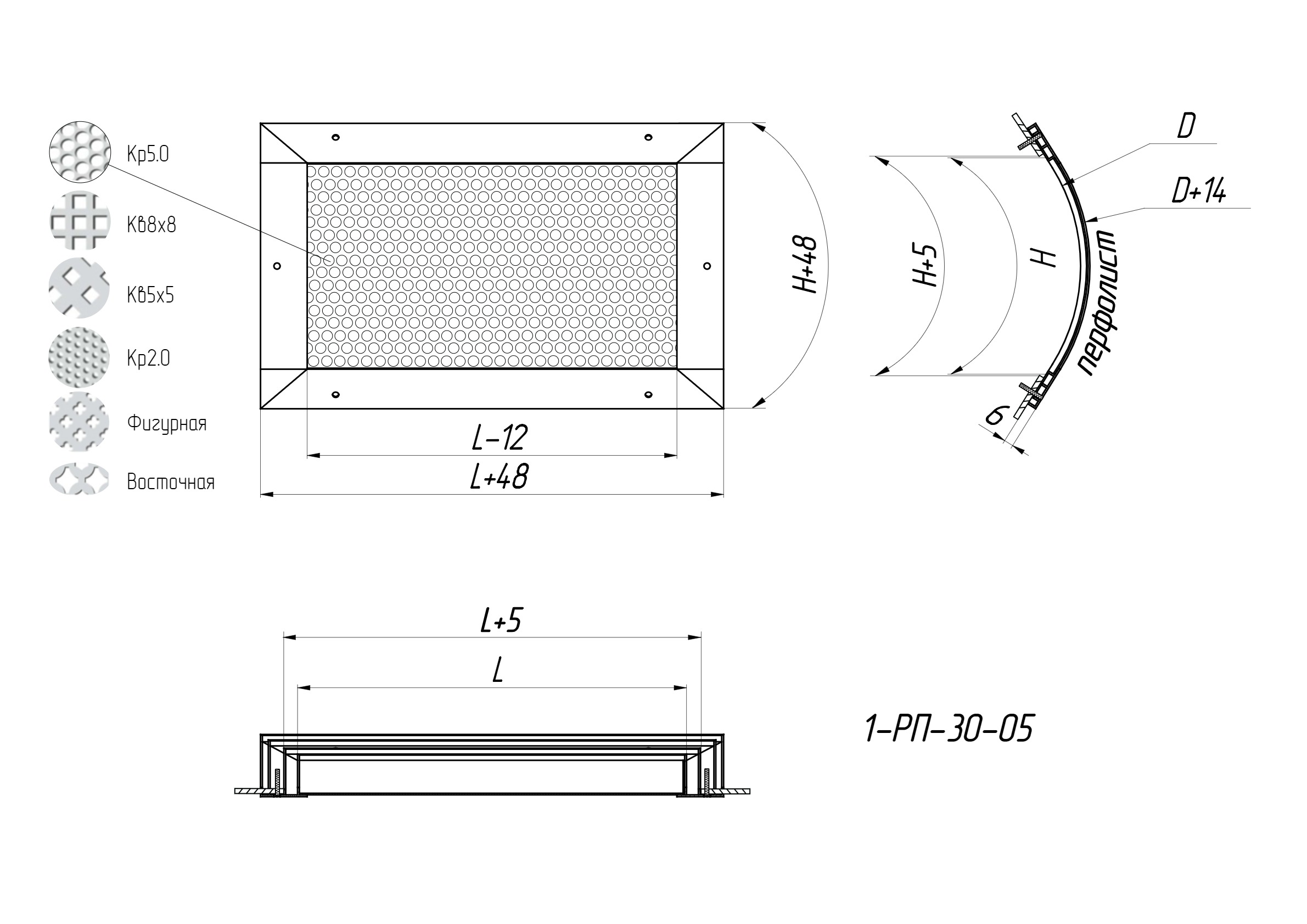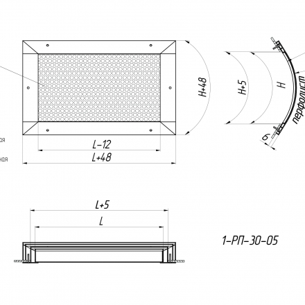 1-РП-30-05 – Single-row non-adjustable grilles are made of high-quality aluminium profiles in the form of a frame and perforated steel.