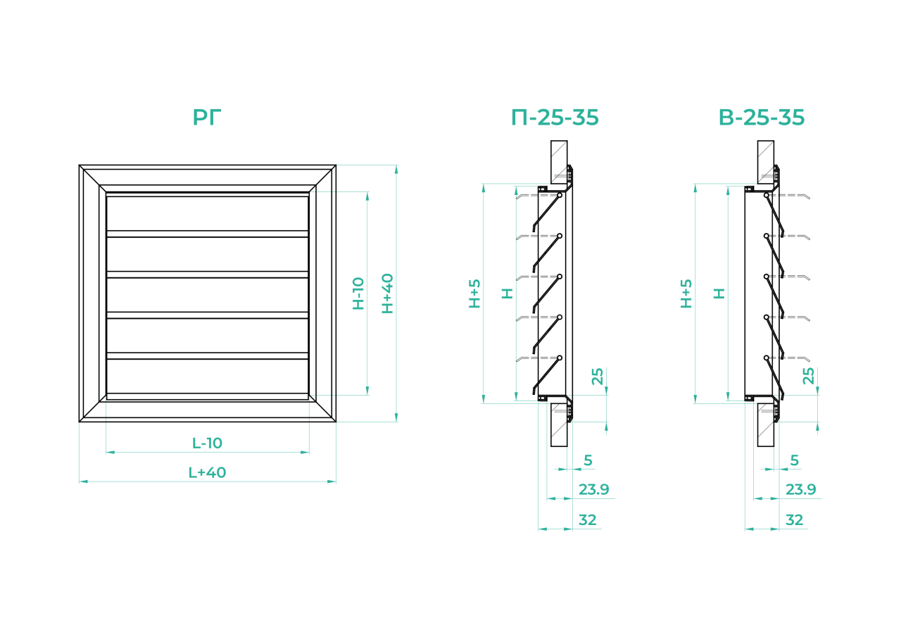 П-25-35* (RAL-9016) 400х300h – works for air supply, screw mounting (mounting holes are located on the front side of the grille frame), white colour.