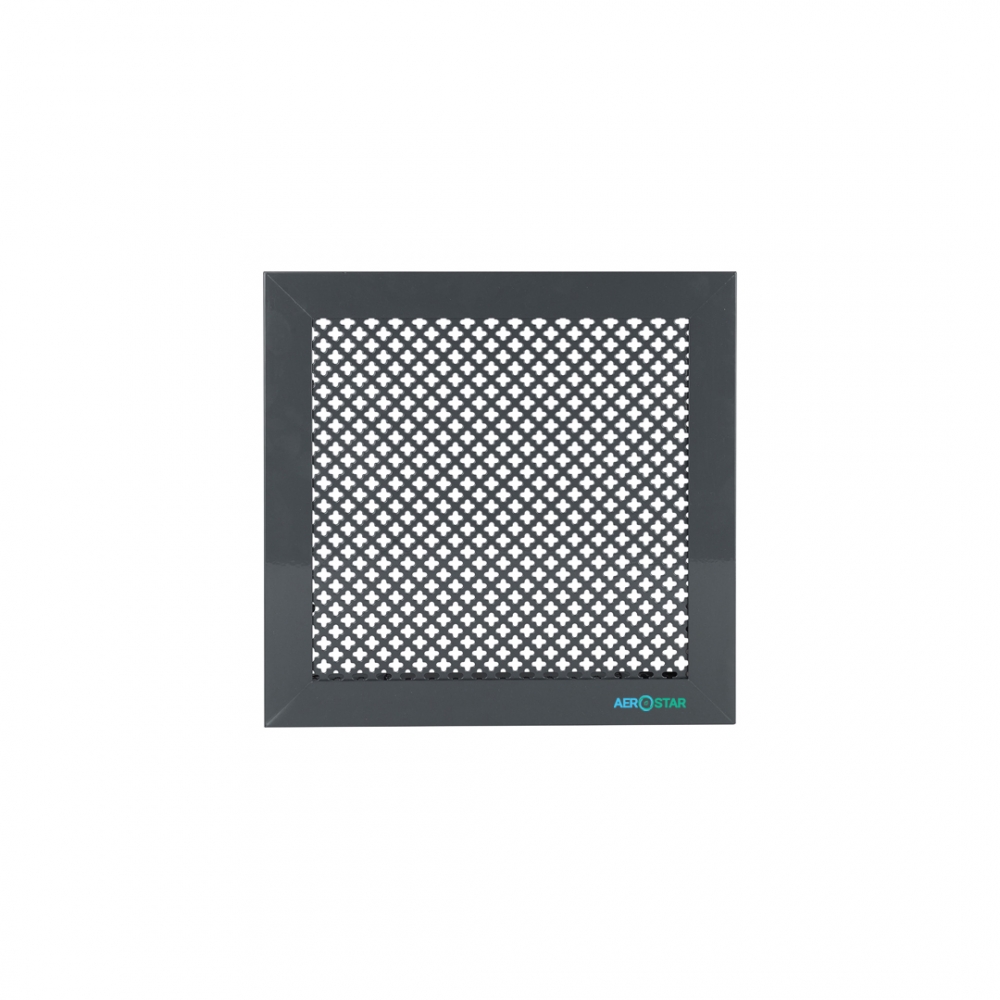П-30-60* Кв 8x8 (RAL9016) 300x300 – frame 30x30, perforation with square cells 8x8mm, equipped with the second row of movable blades for adjusting the air supply volume, screw mounting, white colour.