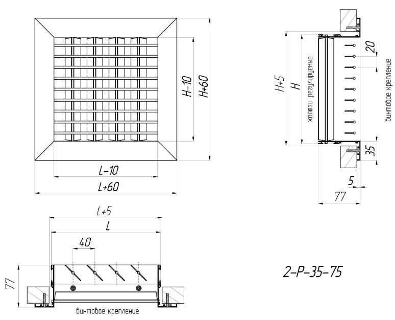 Double-row adjustable grilles are made of high-quality aluminium profiles in the form of a frame and consist of horizontal and vertical movable vanes, changing the position of which (the angle of inclination is selected individually and is adjusted independently of each other), you can adjust the direction of the air flow.