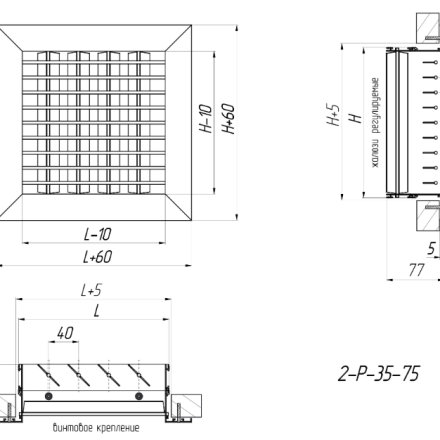 2-Р-35-75* (RAL-9016) 400х300h – Screw mounting (mounting holes are located on the front side of the grille frame), white colour.
