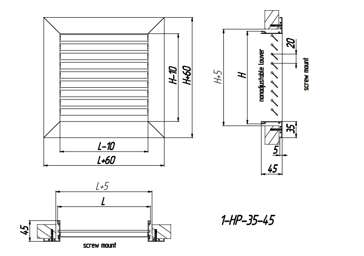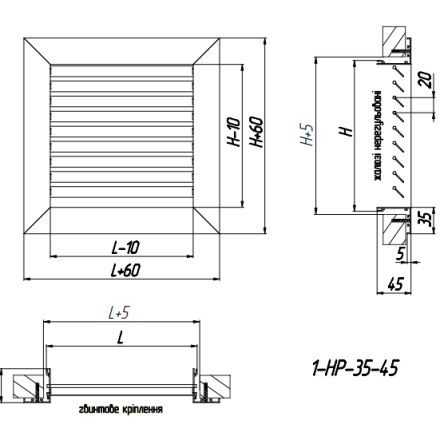 1-NP-35-45* (RAL-9016) 400x300h - mounting with a screw connection (mounting holes are located on the front side of the grille frame), color white.