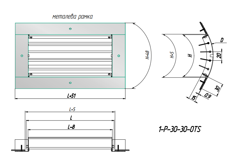 1-P-30-30-OTS - Single row adjustable grilles are made of high quality galvanized sheet in the form of a frame and consist of aluminum adjustable plates, by changing the position of which (the angle of inclination is selected individually and adjusted independently of each other), it is possible to correct the direction of air flow.
