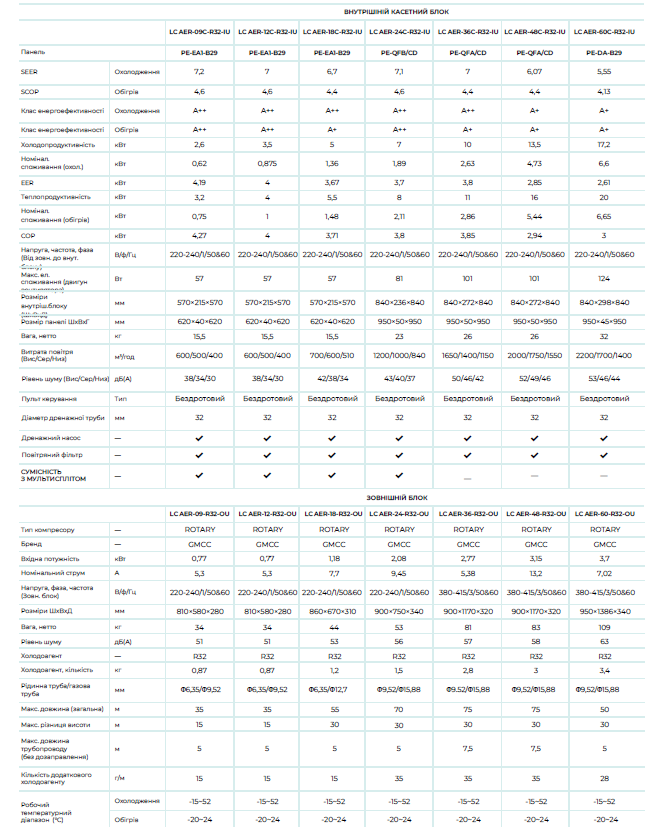 Panoul de 620*620 al unității interioare este ideal pentru plăcile de tavan decorative standard, iar carcasa are o grosime de numai 215 mm, ceea ce vă permite să măriți înălțimea camerei dvs.