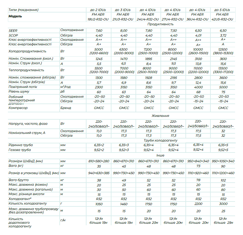 Numărul maxim de unități interioare conectate este de până la 5;