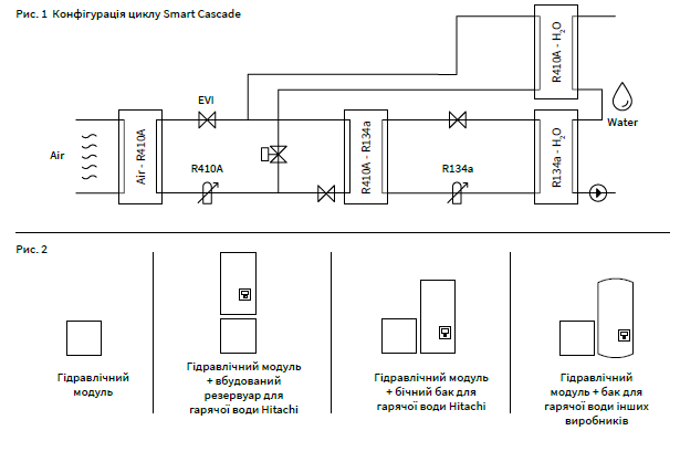 Acestea au doi agenți frigorifici în același timp: R410a și R134a. Ciclul Smart Cascade controlează automat sistemul de încălzire. De exemplu, dacă este necesară încălzirea cu o temperatură a apei mai mică de 53 °C, se utilizează R410a, dacă aceasta este mai mare (până la 80 °C), se utilizează ciclul cu agent frigorific R134a.