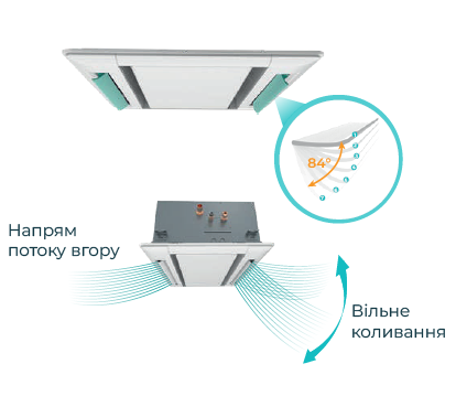Unghiurile de deschidere ale fiecărei lamele pot fi controlate individual cu 8 opțiuni selectabile, cu unghiuri de deschidere cuprinse între 27° și 84° pentru a satisface nevoile coridoarelor înguste și lungi cu tavane înalte și pentru a asigura un flux eficient de aer cald în timpul iernii.