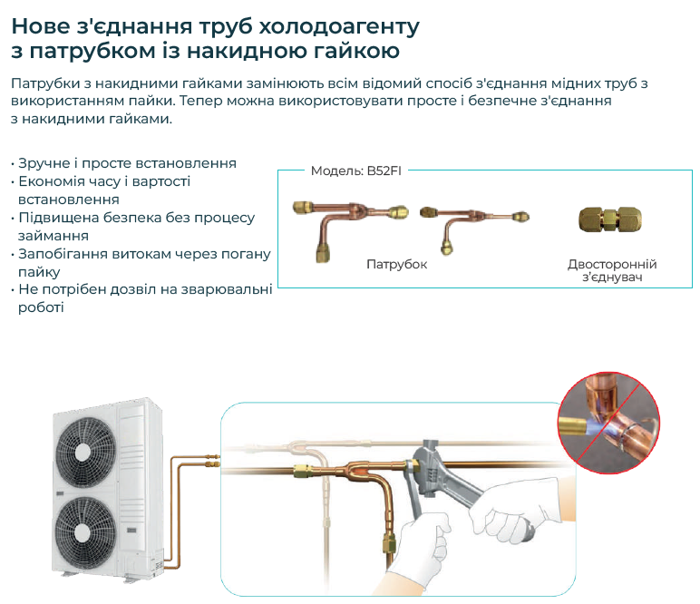 A fost dezvoltată o conductă de aer suplimentară sub forma unui canal care înconjoară ventilatorul pentru a împiedica aerul de evacuare să se amestece cu aerul ambiant, ceea ce cauzează îndepărtarea neregulată a aerului, ceea ce, la rândul său, duce la un flux de aer slab și la reducerea performanței generale a aparatului de aer condiționat. Testele au arătat că, cu această conductă, spre deosebire de o conductă tradițională fără bloc, aerul este suflat mai departe de 24%, ceea ce asigură îndepărtarea eficientă a căldurii reziduale din unitatea de condensare.