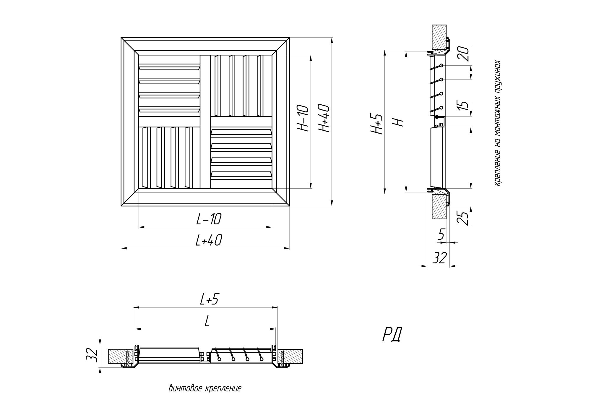 РД (RAL9016) 300х300h- montare cu arcuri de montare, alb.
