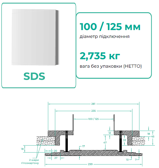 Difuzor rotund (SDR) sau pătrat (SDS) — puteți alege forma în funcție de cerințele dvs. de design FRAMELESSPAINTABLE sau de cerințele clientului.