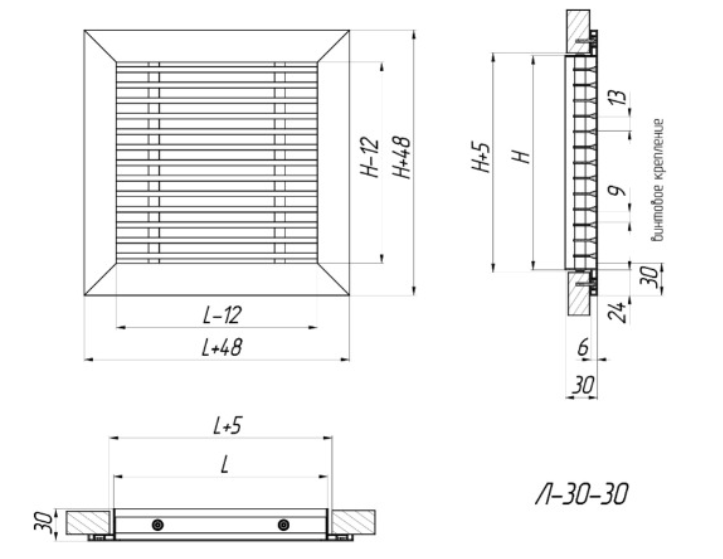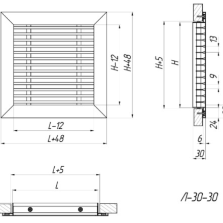 L-30-30 - grătare liniare, cu un singur rând, nereglabile, cu un unghi de deviație a plăcilor de 0°.