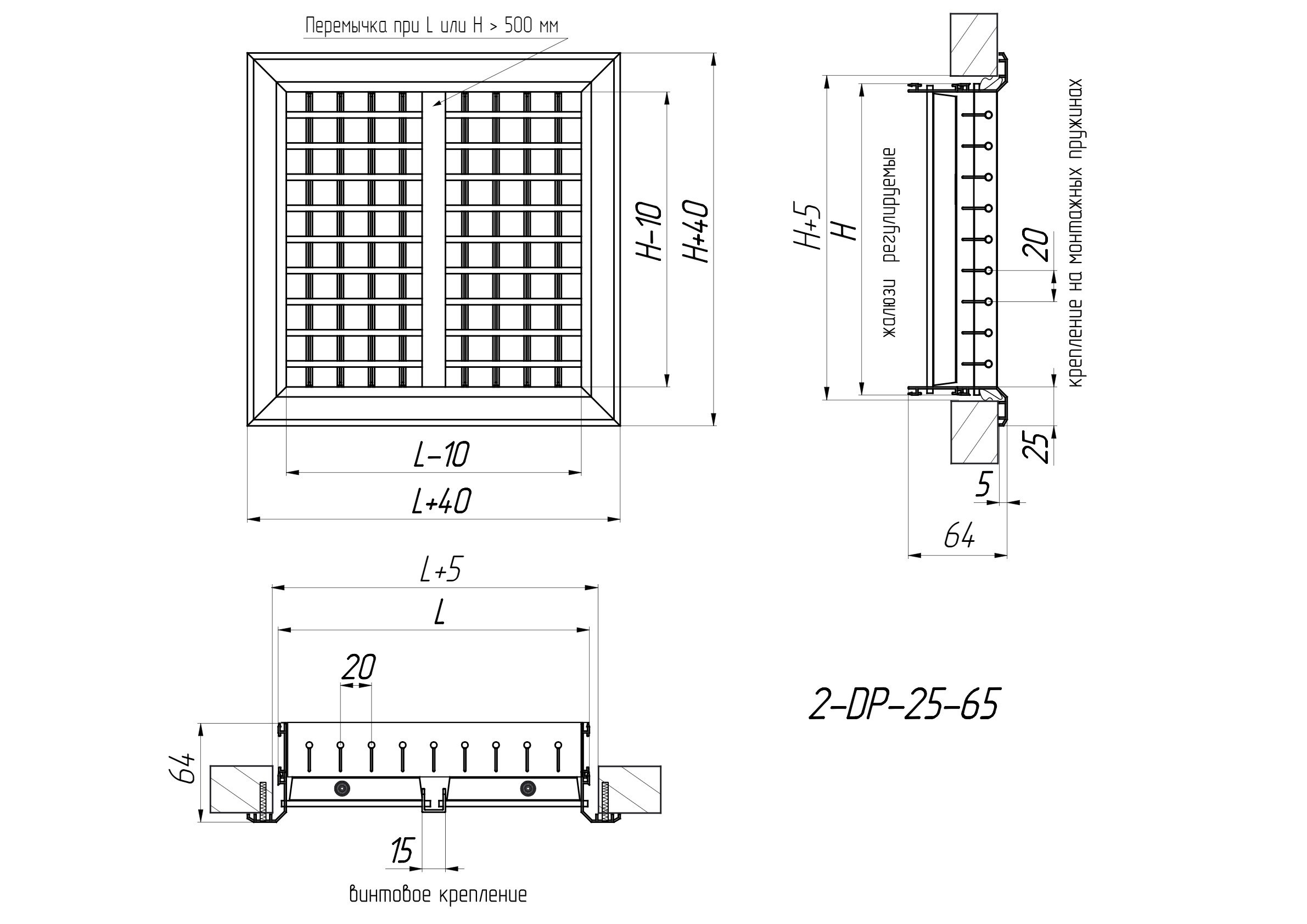 Acest tip de grilă este utilizat în sistemele de ventilație și climatizare de alimentare și evacuare, fiind proiectat pentru instalarea în conductele de aer sau în deschiderile clădirilor de diferite tipuri și destinații. Se deosebește de tipul 2-P-25-65 prin faptul că lamela celui de-al doilea rând este de 2 ori mai largă și are o lățime de 20 mm