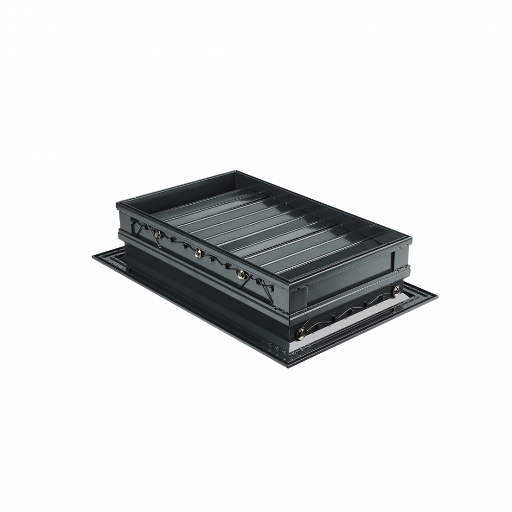 Grilele sunt cu două rânduri, reglabile, realizate din profile de aluminiu de înaltă calitate sub forma unui cadru și constau din plăci mobile orizontale și verticale, care pot fi ajustate prin schimbarea poziției lor (unghiul de înclinare este selectat individual și ajustat independent unul de celălalt) pentru a regla direcția fluxului de aer. Grila este instalată cu ajutorul arcurilor, ceea ce vă permite să ascundeți punctele de fixare și să asigurați aspectul estetic, precum și cu ajutorul unei conexiuni cu șuruburi (găurile de montare sunt situate pe partea frontală a cadrului), ceea ce asigură o instalare ușoară și fiabilă. Vopseaua pulbere rezistentă la căldură este utilizată ca strat protector și decorativ, care asigură o protecție fiabilă împotriva factorilor de mediu negativi și previne uzura prematură a produsului.